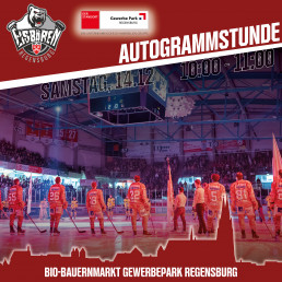 Am Samstag, den 14. Dezember, haben unsere Fans die Gelegenheit, drei Spieler der Eisbären Regensburg hautnah zu erleben. Von 10:00 bis 11:00 Uhr sind Consti Ontl, David Morley und Pato Demetz auf dem Bio-Bauernmarkt im Gewerbepark Regensburg zu Gast.