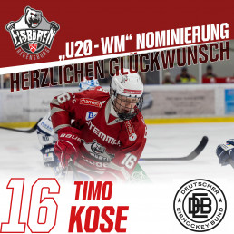 Große Ehre für Timo Kose! Der talentierte 17-jährige Stürmer der Eisbären Regensburg wurde in den Kader der deutschen U20-Nationalmannschaft des Deutschen Eishockey-Bundes (DEB) für die Weltmeisterschaft 2024 in Kanada berufen.