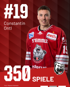 350 Partien für Regensburg – als erst 20. Spieler der Eishockey-Geschichte in der Domstadt hat unser Stürmer Constantin Ontl beim gestrigen Heimspiel gegen die Düsseldorfer EG (1:2 nach Verlängerung) diese Marke erreicht. Der Führungstreffer des 27-Jährigen zum zwischenzeitlichen 1:0 in der 44. Minute war sein 95. Tor im Eisbären-Trikot, 125 weitere bereitete er vor – insgesamt kommt unsere #19 also bereits auf 220 Scorerpunkte im rot-weißen Trikot. Seit seinem Wechsel in die Oberpfalz im Sommer 2018 – damals gerade einmal 19 Jahre alt – hält Consti nun schon im achten Jahr seine Knochen für unseren Klub hin, immer mit vollem Einsatz…