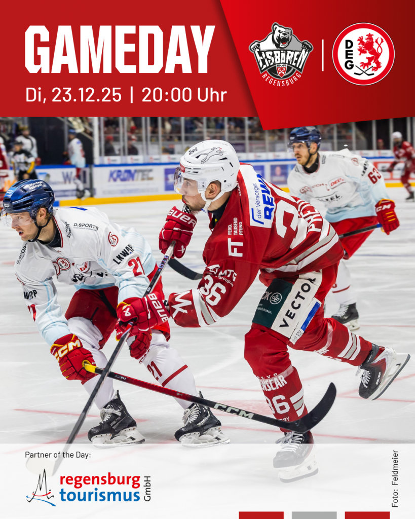 Der Abend vor Weihnachten gehört dem Eishockey. Am Di, 23. Dezember 2025 um 20:00 Uhr empfangen die Eisbären Regensburg die Düsseldorfer EG zum letzten Heimspiel des Jahres 2025 in der Donau-Arena.