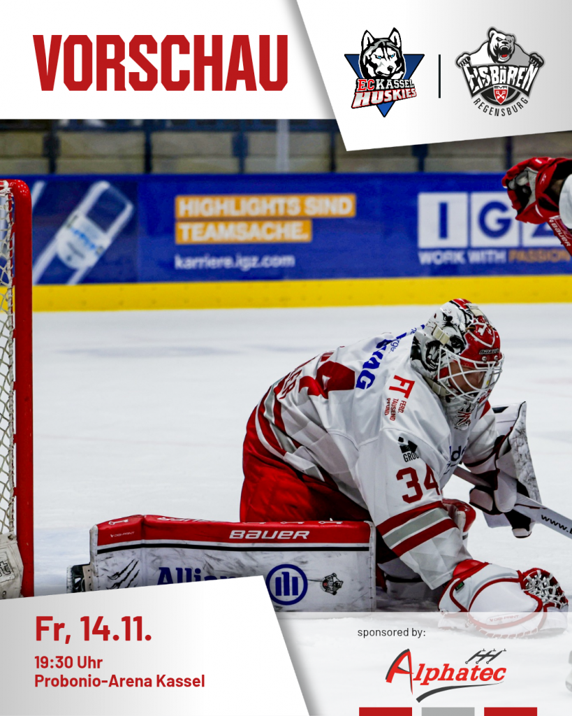 Bei den Kassel Huskies sind die Eisbären Regensburg am Freitag gefordert – Verabschiedung von Korbinian Schütz beim Heimspiel gegen die Starbulls Rosenheim am Sonntag