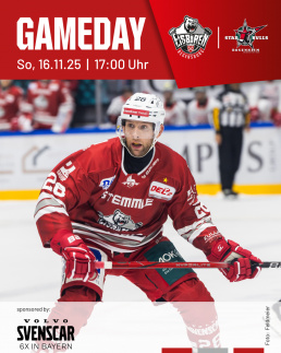 Erstes Heimspiel nach der Länderspielpause in der Donau-Arena. Am Sonntag, 16. November 2025 um 17:00 Uhr empfangen unsere Eisbären die Starbulls Rosenheim. Mit drei Punkten im Rücken aus dem Auswärtssieg beim Tabellenführer Kassel wollen wir gemeinsam mit euch alles versuchen, um die nächsten Punkte in der Donau-Arena zu behalten.