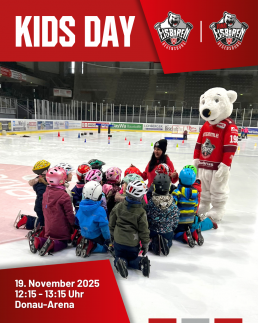 Auch in Regensburg sind unsere Jungeisbären und Eisbären dabei. Am schulfreien Mi, 19. November 2025 gehört die Eisfläche der Donau-Arena von 12:15 Uhr bis 13:15 Uhr ganz den Kids.