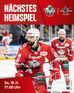 Am So, 16. November 2025 um 17:00 Uhr steigt das traditionsreiche Duell mit den Starbulls Rosenheim.