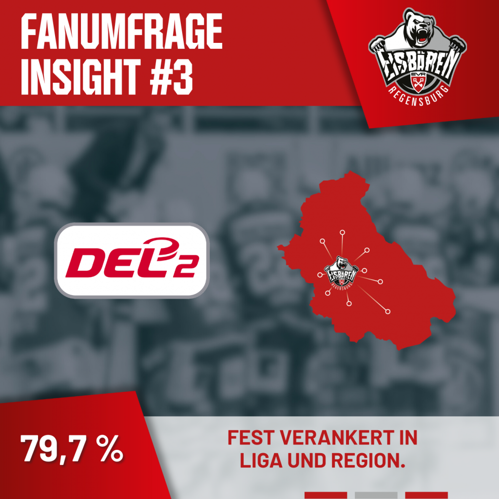 Ihr habt uns bestätigt, dass wir in der Eishockeylandschaft der DEL2 und in der Region Regensburg zuhause sind. 79,7 % sehen uns als festen Bestandteil der Liga und mehr als 60 % empfinden unsere Präsenz im Stadtbild als hoch. Gleichzeitig wünschen sich 88,5 % eine klare regionale Positionierung.
