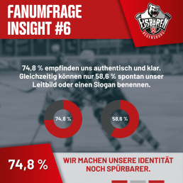 Wir wollten von euch wissen, was die Eisbären im Kern ausmacht. 74,8 % empfinden uns als authentisch und klar. Gleichzeitig können nur 58,6 % spontan unser Leitbild oder einen Slogan benennen.