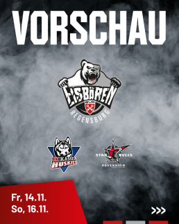 Bei den Kassel Huskies sind die Eisbären Regensburg am Freitag gefordert – Verabschiedung von Korbinian Schütz beim Heimspiel gegen die Starbulls Rosenheim am Sonntag