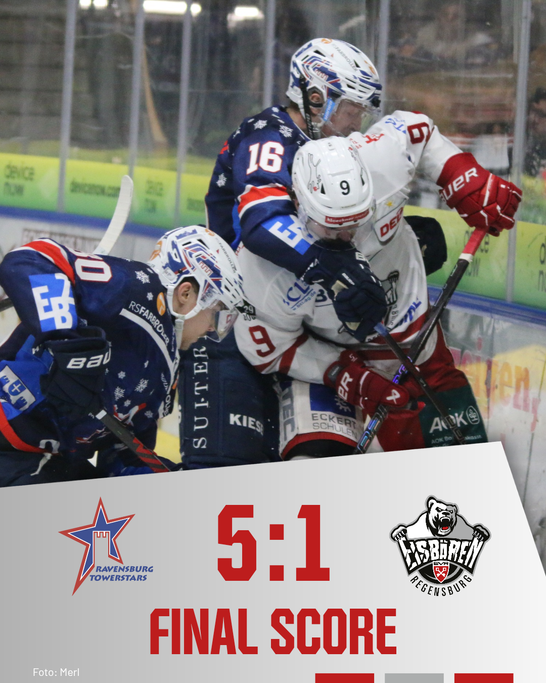 Ravensburg Towerstars – Eisbären Regensburg 1:5 (1:0/2:1/2:0)