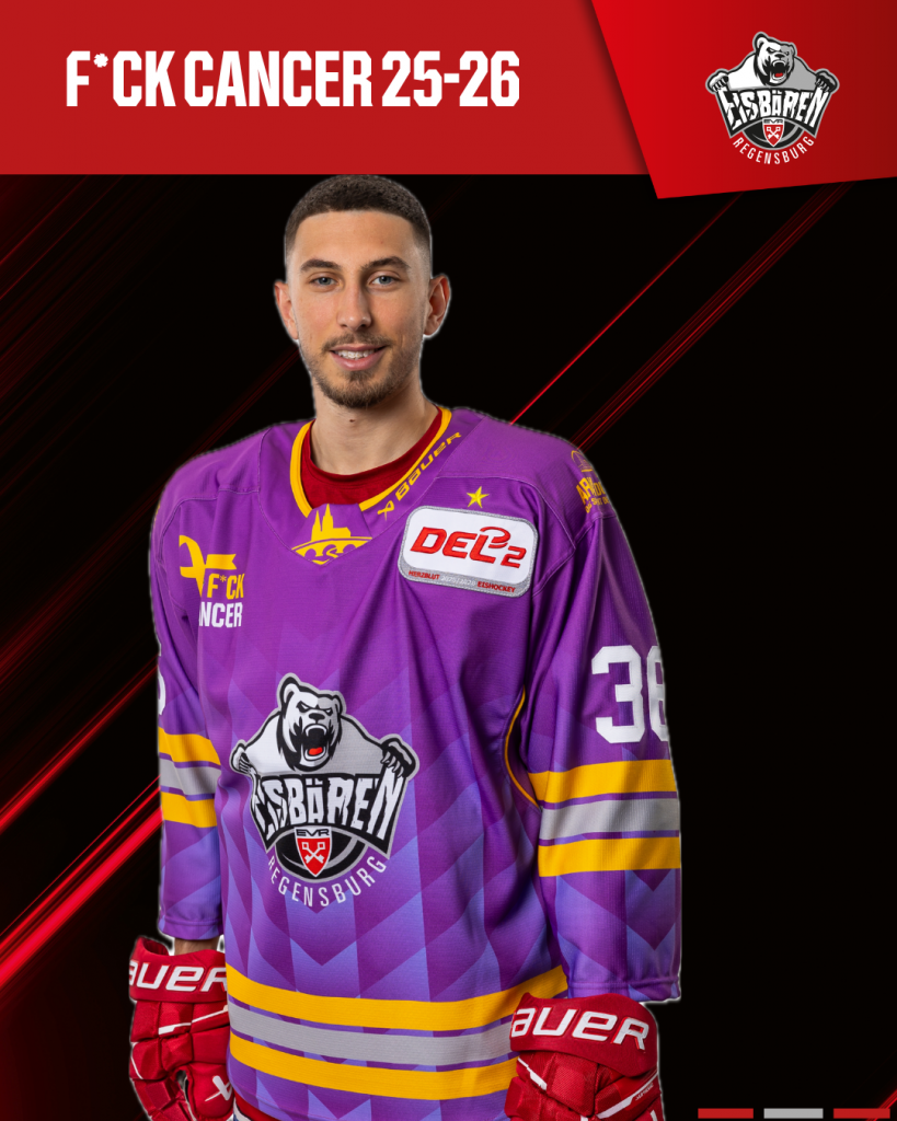 Unser F*CK Cancer Wochenende findet heuer von 16. bis 18. Januar 2026 statt. Beim Heimspiel am Sonntag, 18. Januar 2026 gegen den ESV Kaufbeuren tragen unsere Jungs dieses besondere Trikot.