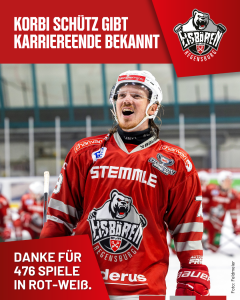 Im nächsten Heimspiel, am Sonntag, 16. November, ab 17 Uhr in der Donau-Arena gegen die Starbulls Rosenheim, wird Korbinian Schütz offiziell verabschiedet – seid live dabei und feiert unser Urgestein mit uns! Tickets unter www.ebr.live